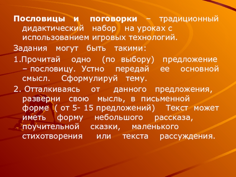 Слайд 11Пословицы и поговорки – традиционный дидактический