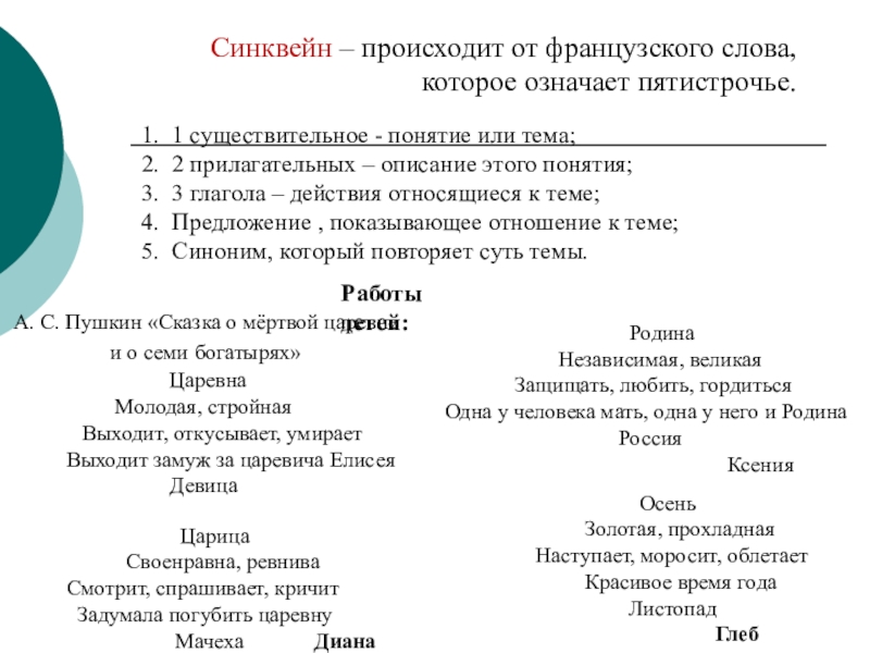2. 2 прилагательных – описание этого понятия;