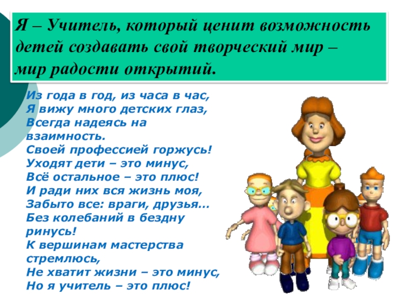 Я – Учитель, который ценит возможность детей создавать свой творческий мир –