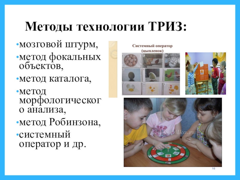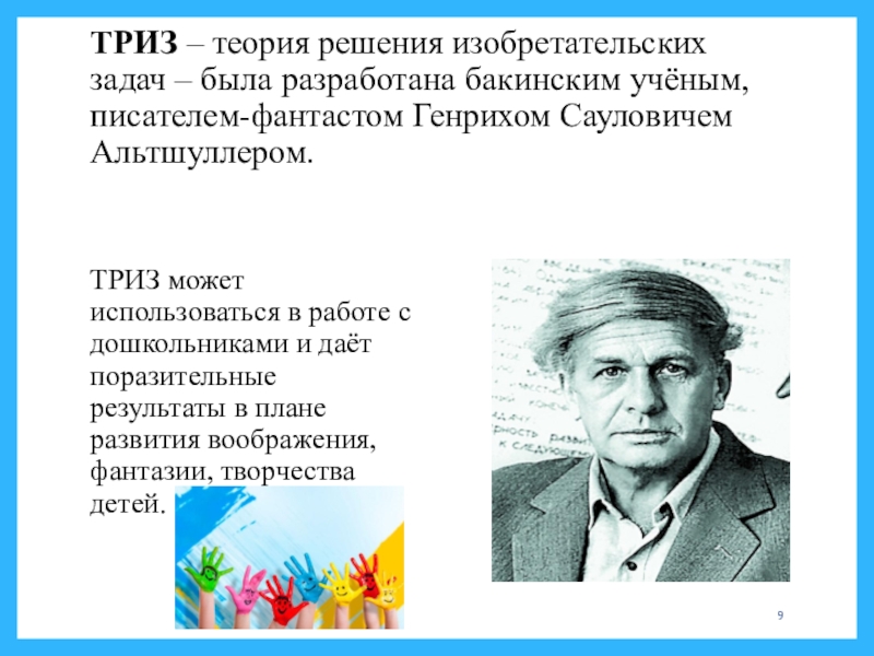 ТРИЗ может использоваться в работе с дошкольниками и даёт поразительные результаты в плане развития воображения, фантазии, творчества детей.
