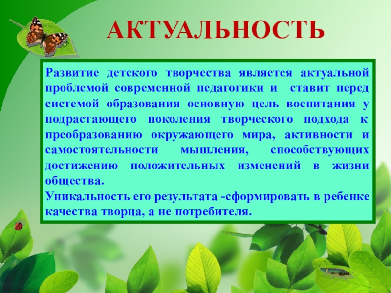 Развитие детского творчества является актуальной проблемой современной педагогики и ставит перед