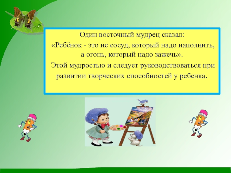 Этой мудростью и следует руководствоваться при развитии творческих способностей у ребенка.