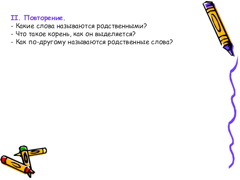 - Ориентируясь на тему и схему на доске, постарайтесь сформулировать цель урока. (Повторить, какие слова называются родственными, учиться подбирать такие слова, познакомиться с новым словарным словом.)