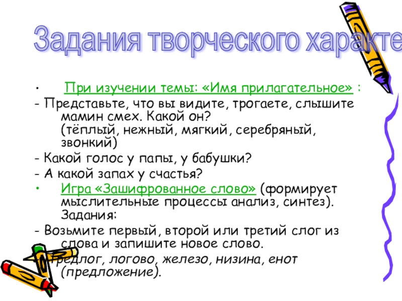 Задания творческого характера