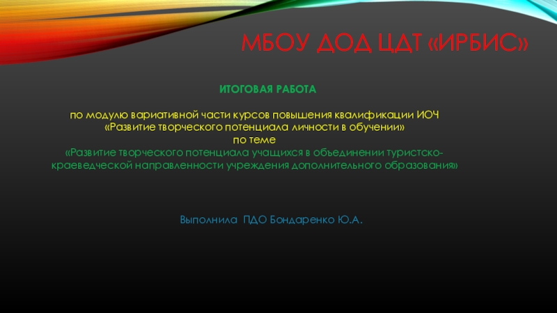 Выполнила ПДО Бондаренко Ю.А.