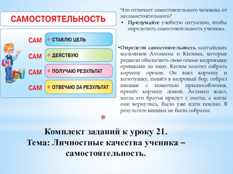 Придумайте учебную ситуацию, чтобы определить самостоятельность ученика.