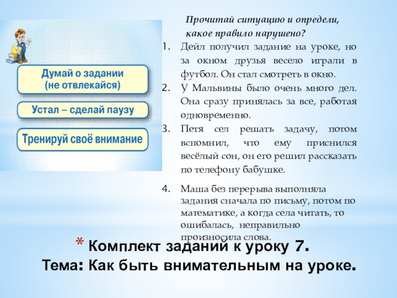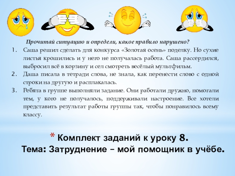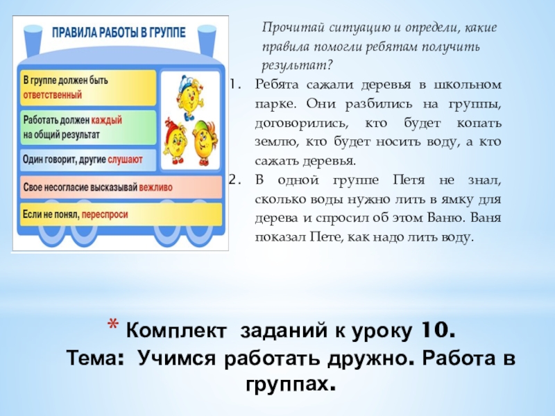 Прочитай ситуацию и определи, какие правила помогли ребятам получить результат?