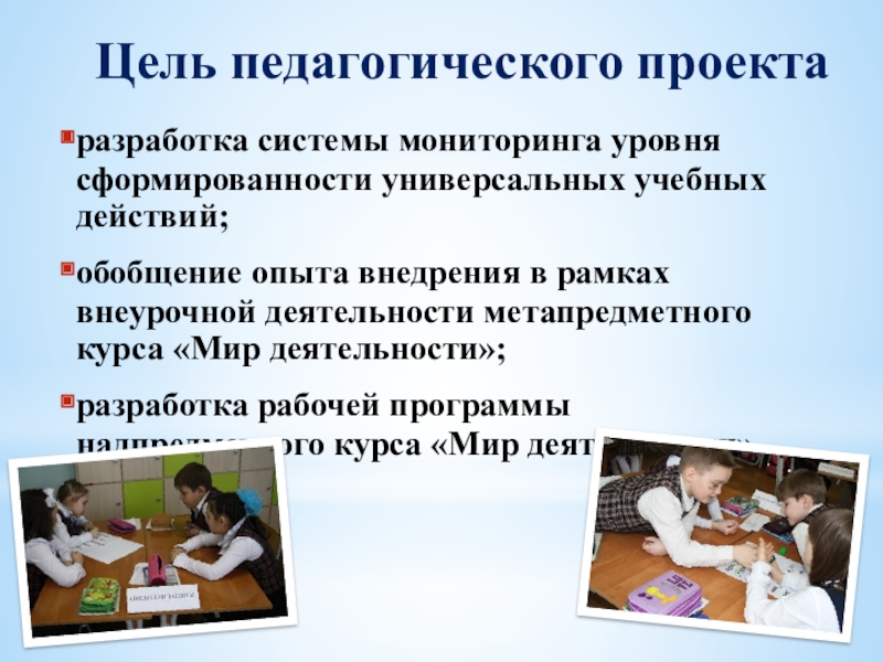 опыта внедрения в рамках внеурочной деятельности метапредметного курса «Мир деятельности»;