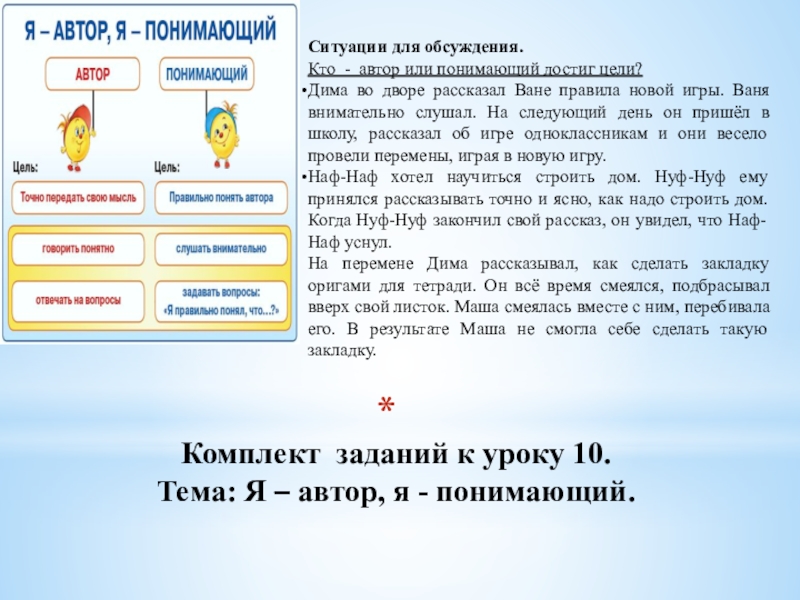 Наф-Наф хотел научиться строить дом. Нуф-Нуф ему принялся рассказывать точно и ясно, как надо строить дом. Когда Нуф-Нуф закончил свой рассказ, он увидел, что Наф-Наф уснул.