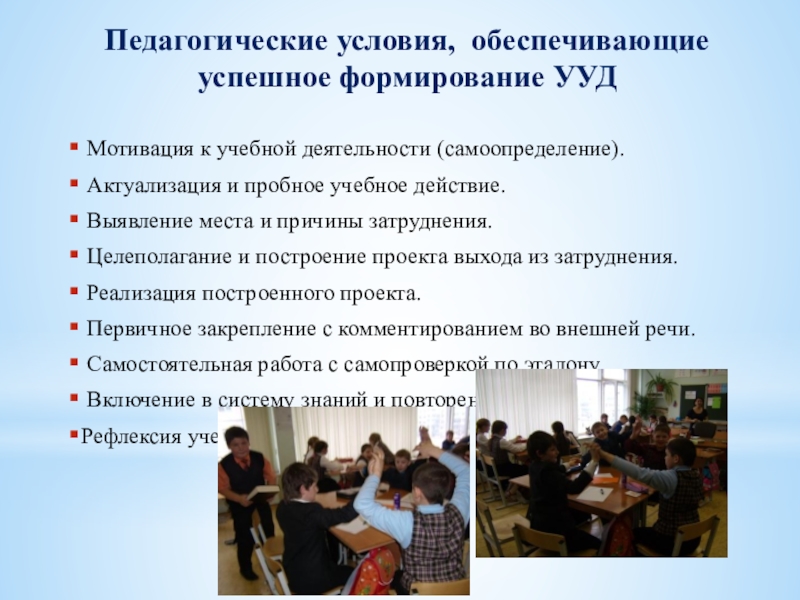 Слайд 11Педагогические условия, обеспечивающие успешное формирование УУД