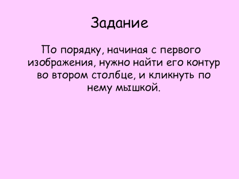 Задание По порядку, начиная с первого изображения, нужно найти его контур во втором столбце, и кликнуть по нему мышкой.