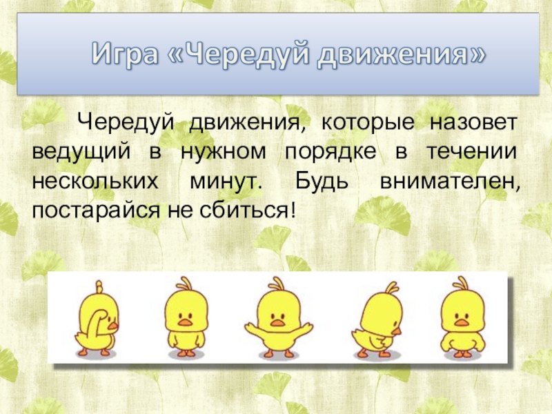 Слайд 4 Чередуй движения, которые назовет ведущий в нужном порядке