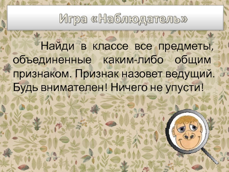 признаком. Признак назовет ведущий. Будь внимателен! Ничего не упусти!