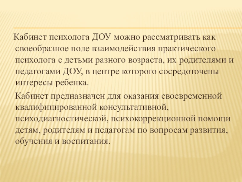 Развивающая предметно-пространственная среда кабинета педагога-психолога