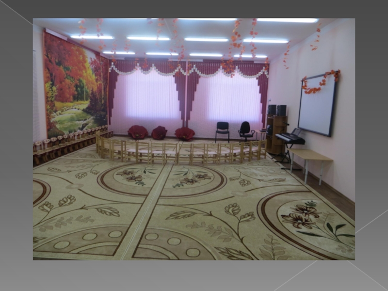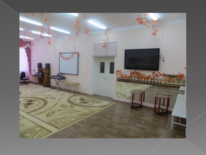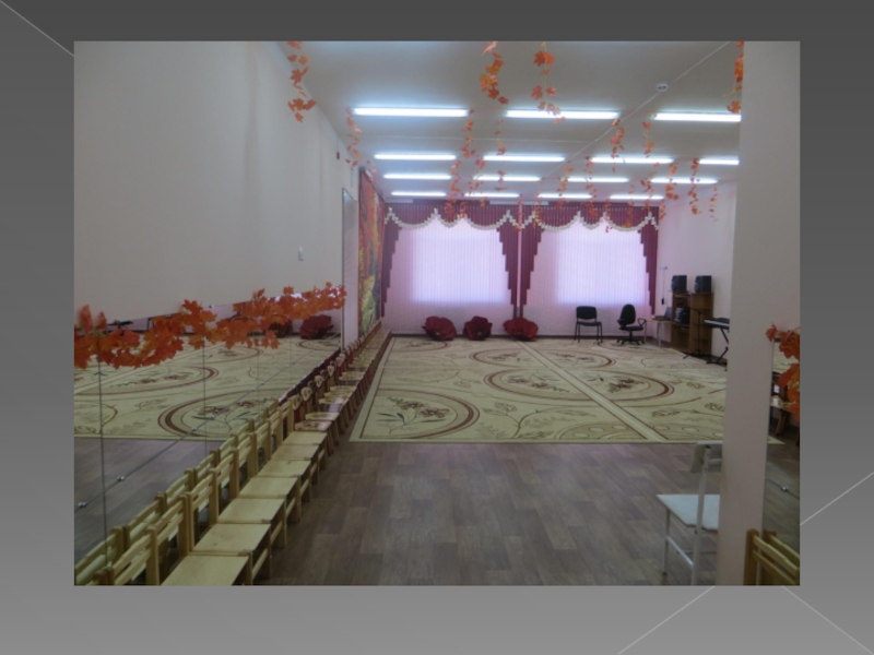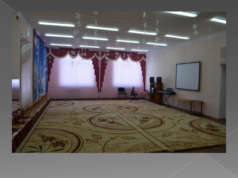 МУЗЫКАЛЬНЫЙ ЗАЛВ музыкальном зале проходят интересные утренники, театрализованные представления, выступления артистов.Особенно красив он по праздникам.