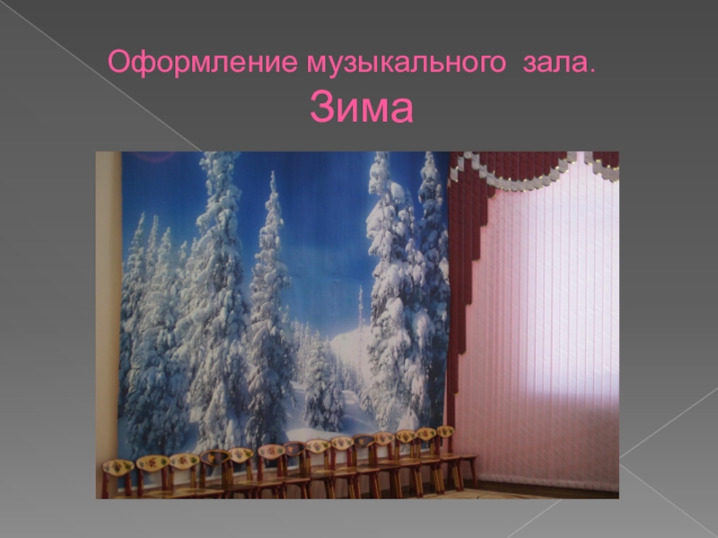 Слайд 3Оформление музыкального зала. Зима