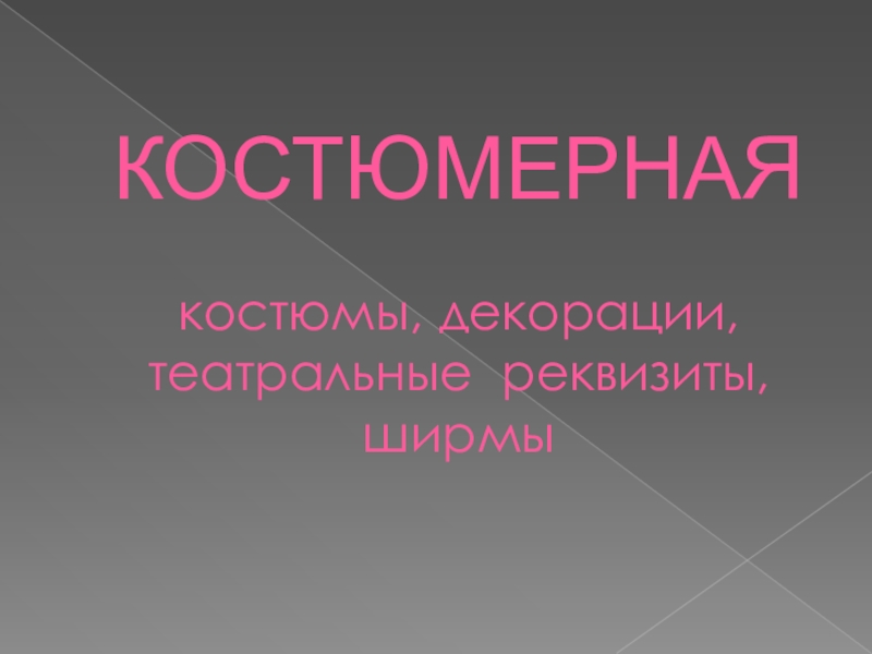 Слайд 19КОСТЮМЕРНАЯ костюмы, декорации, театральные реквизиты, ширмы