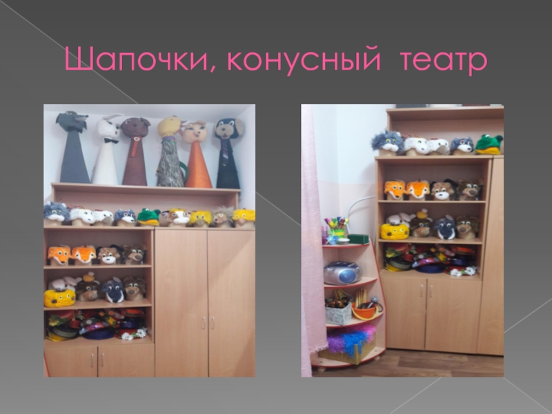 Слайд 17Шапочки, конусный театр