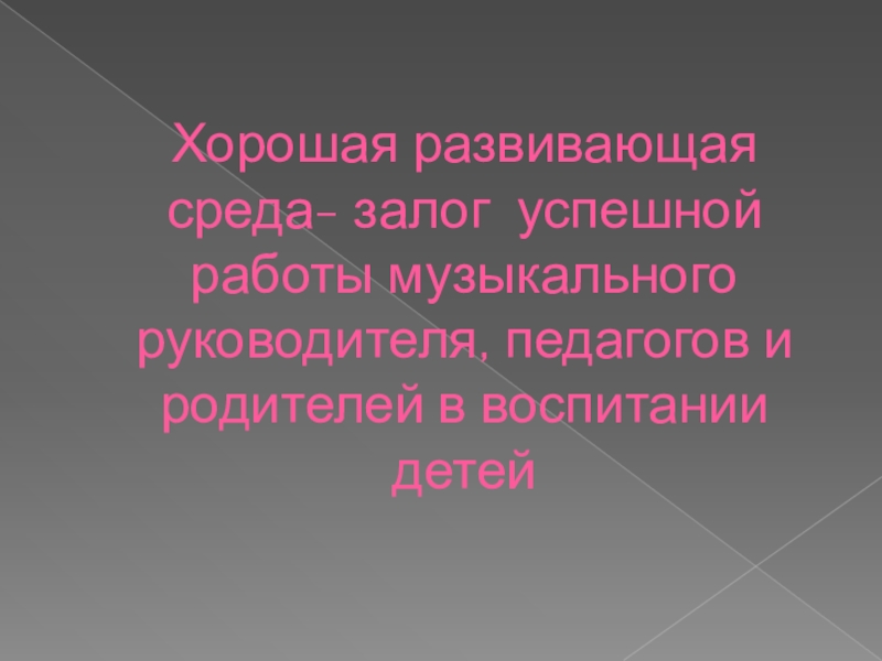 Хорошая развивающая среда- залог успешной работы музыкального руководителя, педагогов и родителей в воспитании детей
