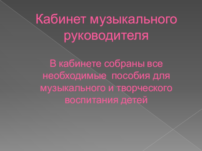 Слайд 15Кабинет музыкального руководителя В кабинете собраны все необходимые пособия для музыкального и