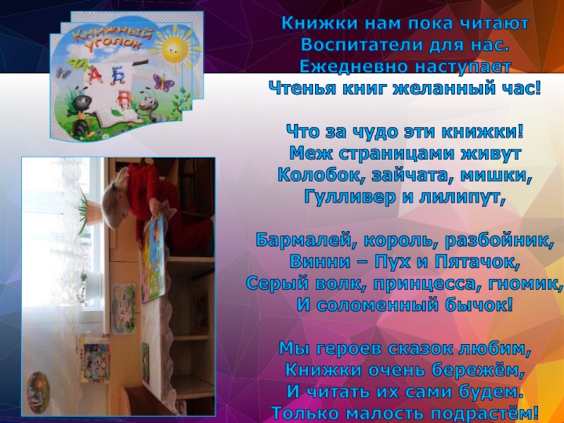 Это сайт презентаций, где можно хранить и обмениваться своими презентациями, докладами, проектами, шаблонами в формате PowerPoint с другими пользователями. Мы помогаем школьникам, студентам, учителям, преподавателям хранить и обмениваться учебными материалами.