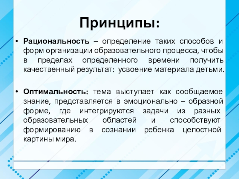 Рациональность – определение таких способов и форм организации образовательного процесса, чтобы
