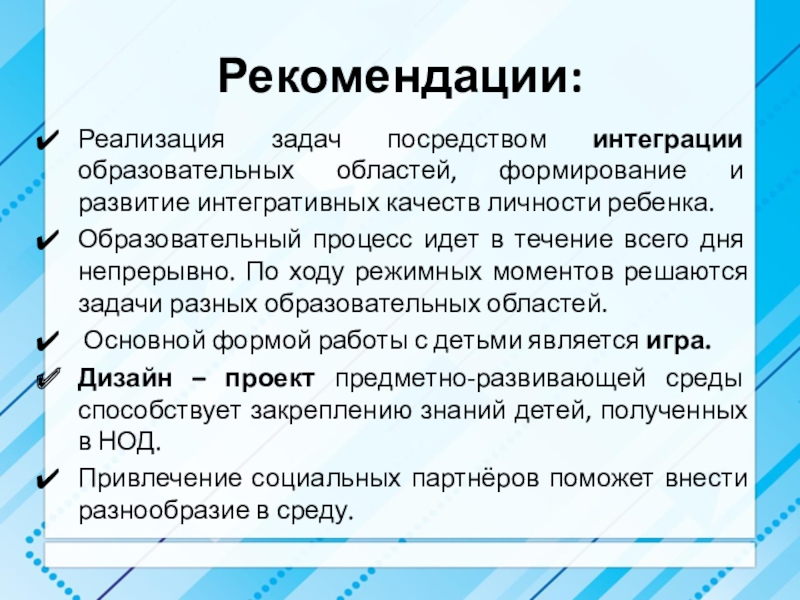 Реализация задач посредством интеграции образовательных областей, формирование и развитие интегративных качеств