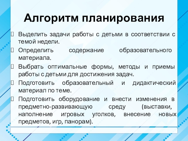 Выбрать оптимальные формы, методы и приемы работы с детьми для достижения задач.