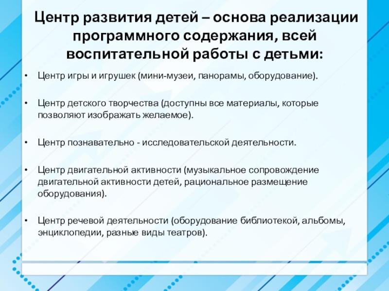 Центр развития детей – основа реализации программного содержания, всей воспитательной