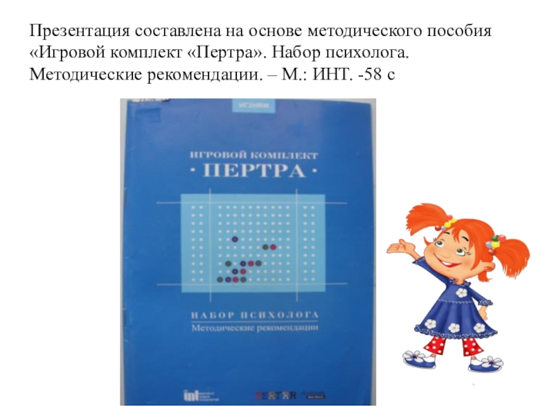 Презентация составлена на основе методического пособия «Игровой комплект «Пертра». Набор психолога. Методические рекомендации. – М.: ИНТ. -58