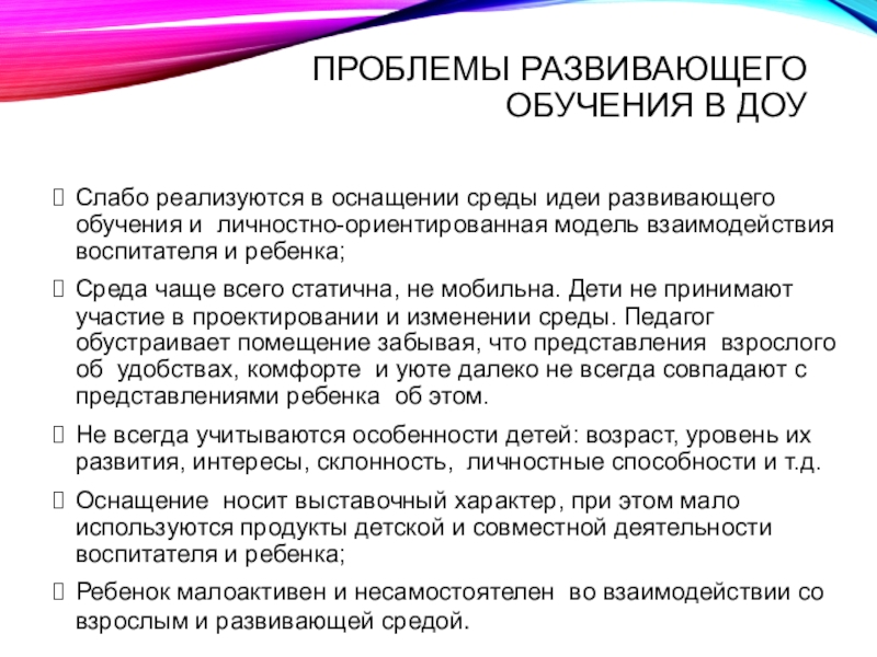 Слайд 19Проблемы развивающего обучения в ДОУ