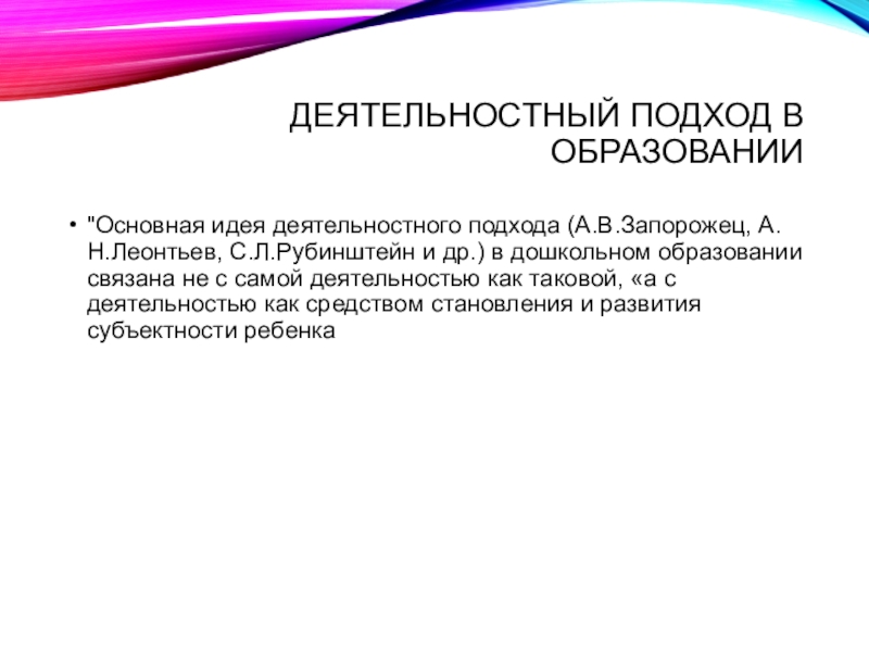 "Основная идея деятельностного подхода (А.В.Запорожец, А.Н.Леонтьев, С.Л.Рубинштейн и