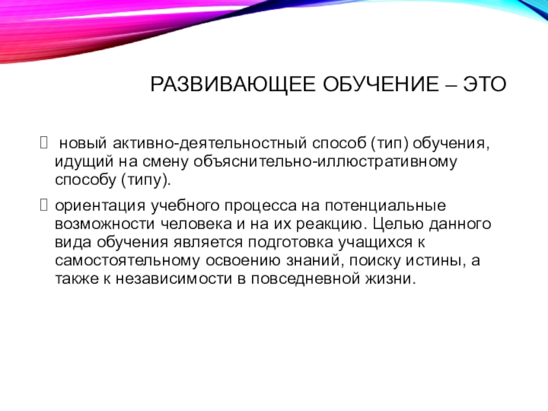 Слайд 8Развивающее обучение – это