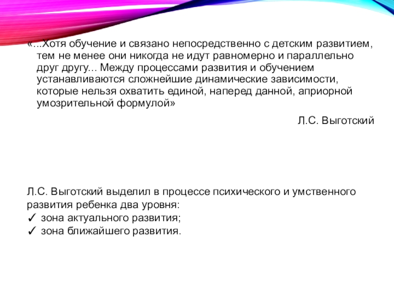 Слайд 5«...Хотя обучение и связано непосредственно с детским развитием, тем не менее