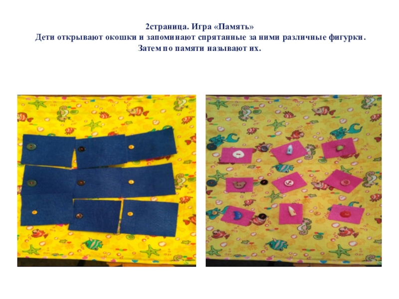 2страница. Игра «Память»  Дети открывают окошки и запоминают спрятанные за ними различные фигурки. Затем по памяти