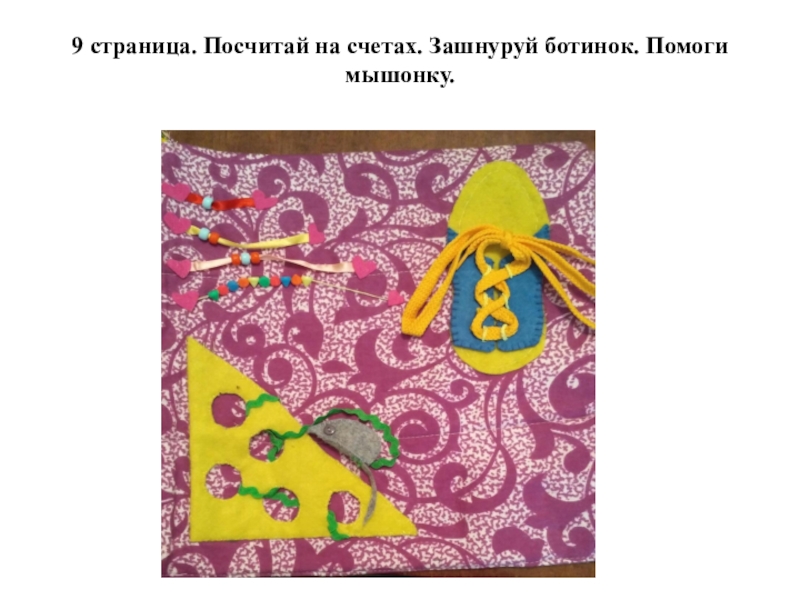 9 страница. Посчитай на счетах. Зашнуруй ботинок. Помоги мышонку.
