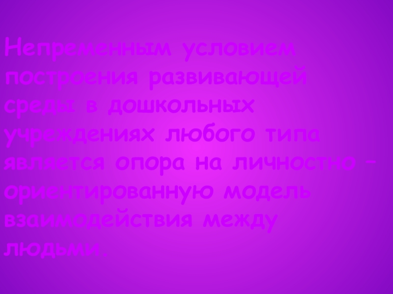 Непременным условием построения развивающей среды в дошкольных учреждениях любого типа является опора на личностно – ориентированную модель