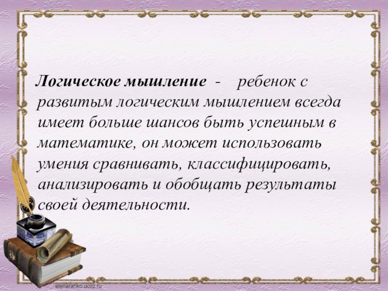 Слайд 3 Логическое мышление - ребенок с развитым логическим мышлением всегда