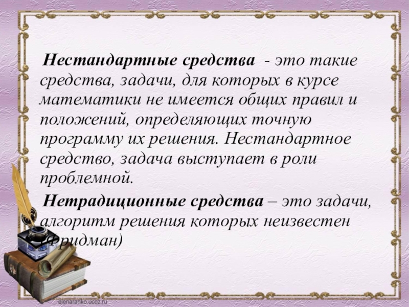 Нетрадиционные средства – это задачи, алгоритм решения которых неизвестен (Фридман)
