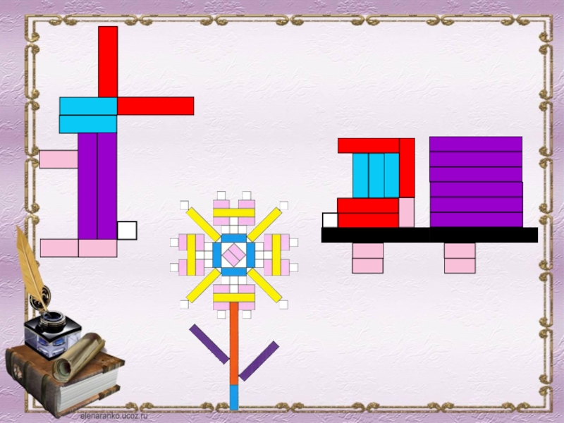 — задачи-смекалки геометрического характера с палочками от самых простых на воспроизведение по образцу узора и до составления предметных картинок, на трансфигурацию (изменить фигуру путем перекладывания указанного количества палочек);