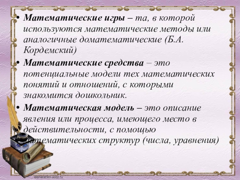Слайд 7Математические игры – та, в которой используются математические методы или аналогичные