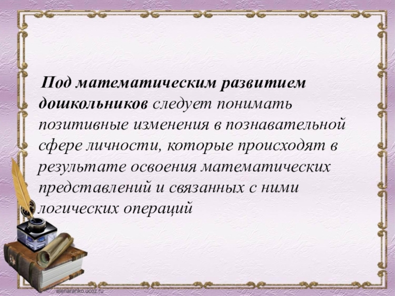 Слайд 2 Под математическим развитием дошкольников следует понимать позитивные изменения в