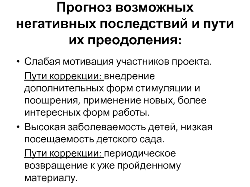 Слайд 17Прогноз возможных негативных последствий и пути их преодоления: