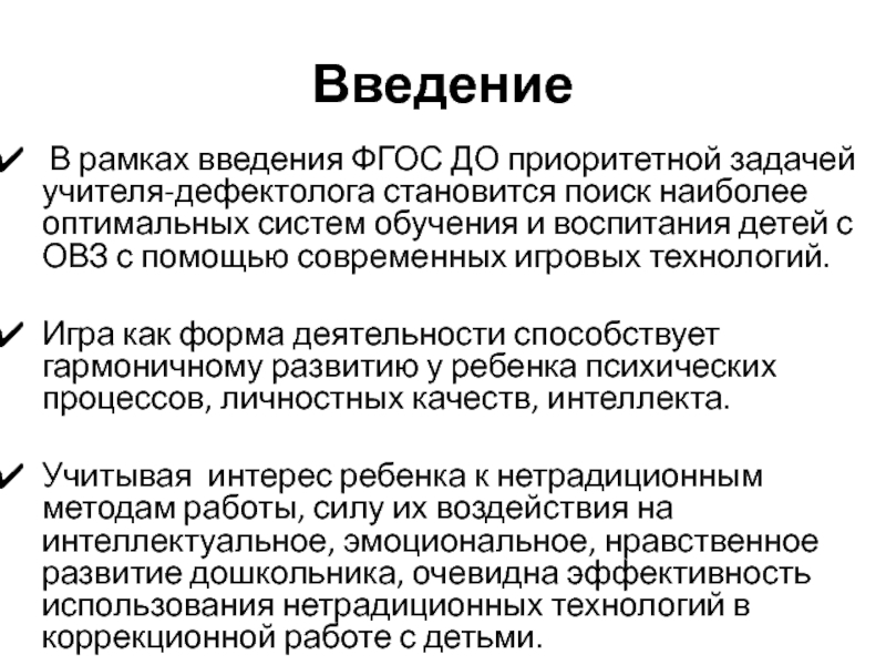 наиболее оптимальных систем обучения и воспитания детей с ОВЗ с помощью современных игровых технологий.