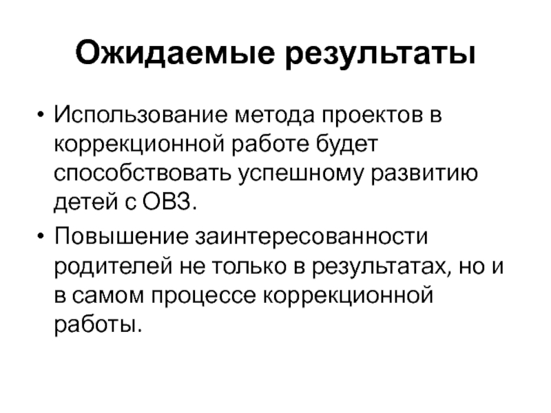 Повышение заинтересованности родителей не только в результатах, но и в самом процессе коррекционной работы.