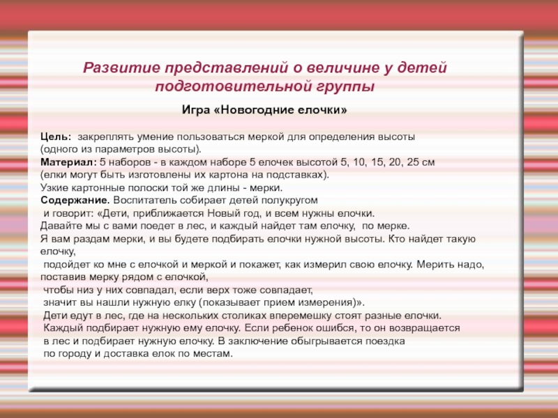 Развитие представлений о величине у детей подготовительной группы