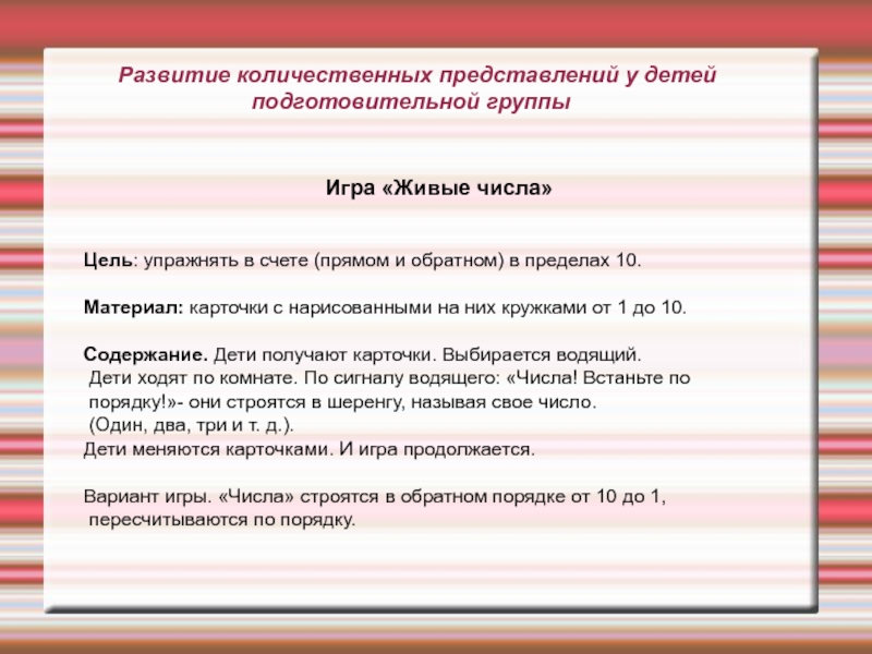Слайд 3 Развитие количественных представлений у детей подготовительной группы