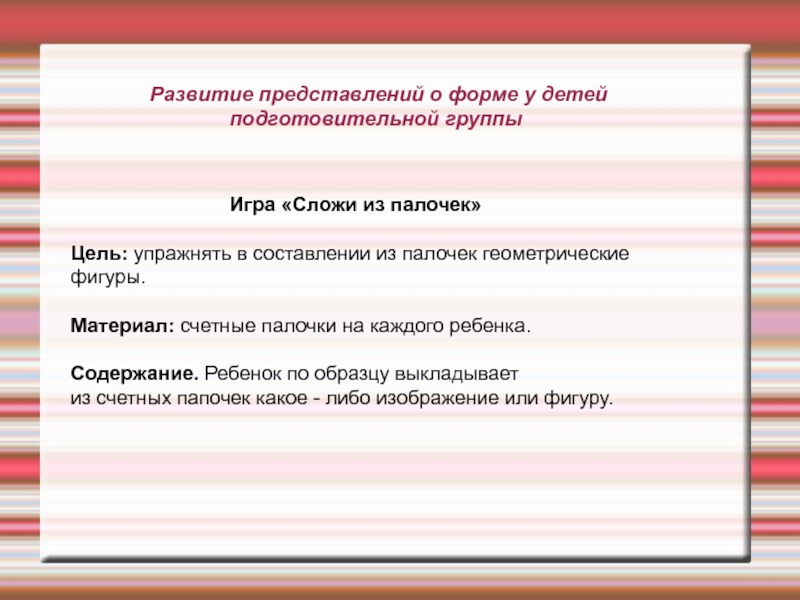 Слайд 5 Развитие представлений о форме у детей подготовительной группы