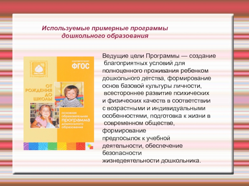 Слайд 2Используемые примерные программы дошкольного образования