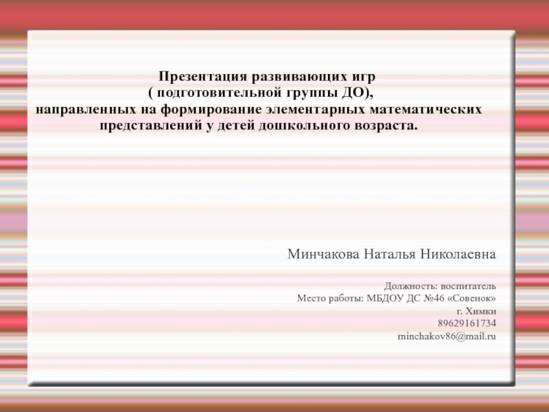 Презентация развивающих игр